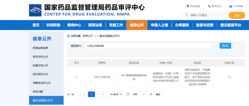 喜报|迪福润丝1类创新鼻喷流感疫苗获批临床许可